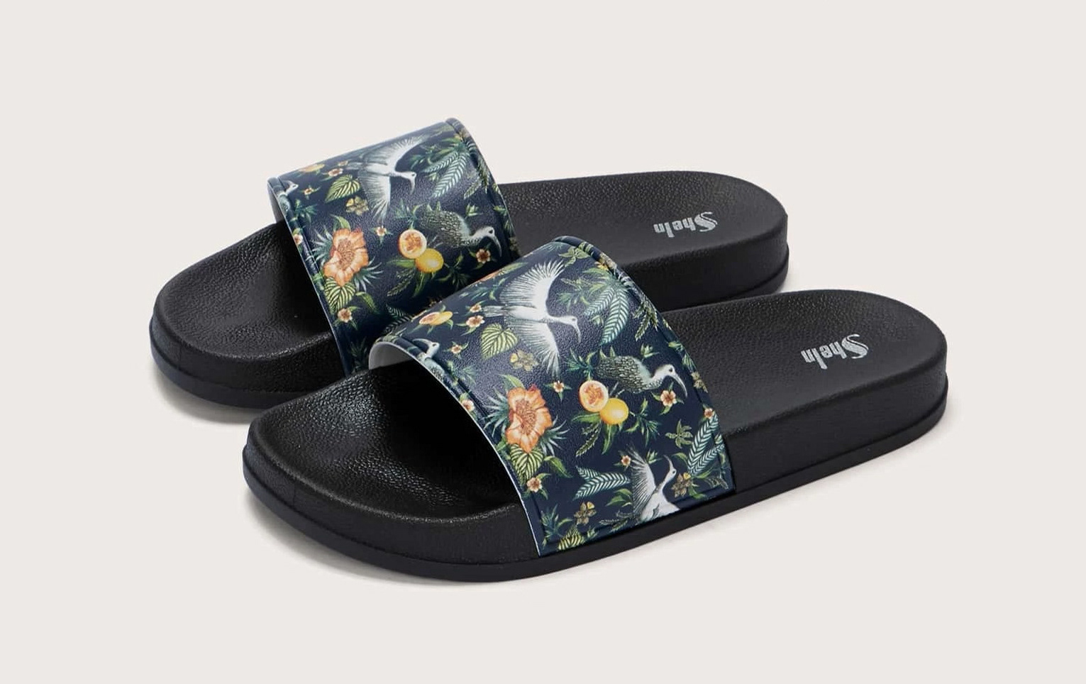 Floral 02: tropical style with floral and animal designs (green ibis bird).